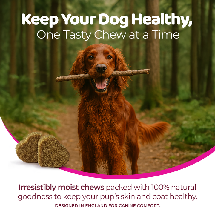 This supplement is designed to provide daily support for your dog’s health. Depending on the specific variant, it may target joint & hip mobility, skin & coat shine, calm behaviour, digestive health or allergy support. For example, the “Hip & Joint” chews are described as helping joints and cartilage to stay healthy, keeping dogs active and comfortable.